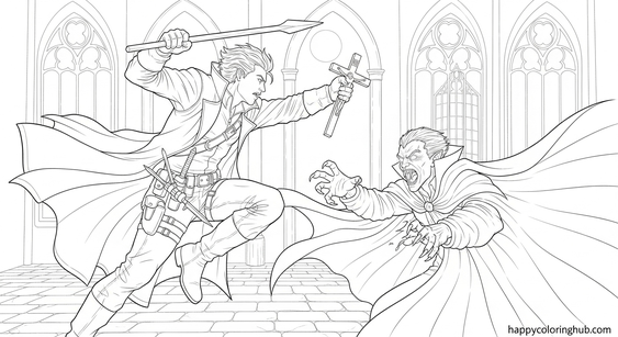 Unleash your inner darkness with our captivating adult vampire coloring pages! Download high-quality PNG files and immerse yourself in a world of gothic fantasy. These intricate designs are perfect for relaxation and stress relief. Coloring isn’t just fun; it’s a creative outlet that boosts focus and mindfulness. From classic depictions to modern interpretations, find your perfect vampire scene to color today. Download your vampire coloring pages now and sharpen those coloring pencils!