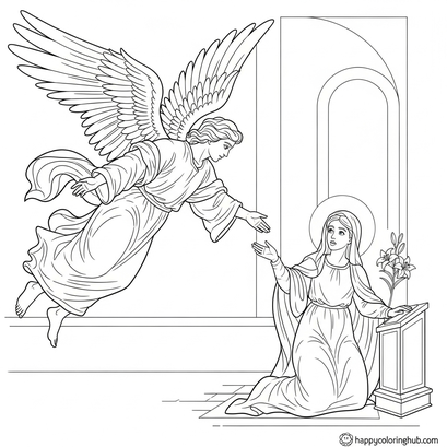 Explore the Annunciation with our “Angel Gabriel Appears to Mary Coloring Page”! Unleash creativity and learn about this pivotal biblical moment. Perfect for Sunday school, homeschooling, or quiet reflection, this printable coloring page engages children (and adults!) in a fun, educational activity. Coloring fosters fine motor skills, enhances focus, and encourages artistic expression. Download your free “Angel Gabriel Appears to Mary Coloring Page” now and bring this sacred scene to life with vibrant colors! A wonderful way to connect with faith and art.