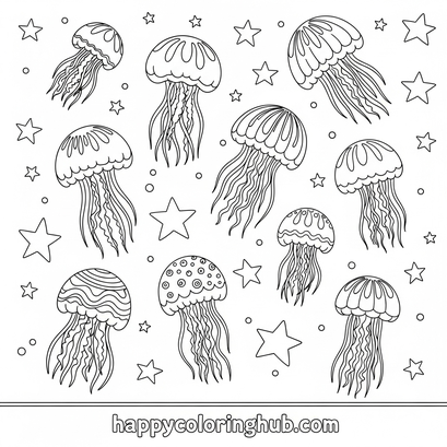 Unleash your inner artist as you fill each page with vibrant colors. Coloring is a fantastic stress-reliever, promoting mindfulness and focus. Perfect for kids and adults alike, these jellyfish printables offer hours of artistic fun while developing fine motor skills. Download and print your free jellyfish coloring pages today and let your imagination swim!