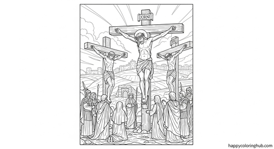Reflect on the powerful scene of Jesus’ crucifixion and piercing from John 19:18,37 with printable Bible coloring pages. Engage with scripture creatively, bringing the story of redemption to life. Download free coloring pages depicting Jesus crucified and pierced. Perfect for Sunday school, personal devotion, or family Bible time. Explore the depth of Christ’s sacrifice through art. #BibleColoringPages #John19 #JesusCrucified #Easter #SundaySchool #BibleStudy