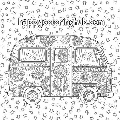 Boho camper vans coloring pages