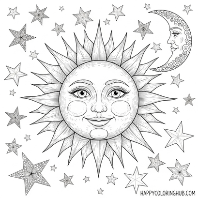 Unleash your creativity with our bold and simple sun and moon coloring page! Perfect for all ages, this free printable offers a fun, relaxing activity. Download now and explore color combinations that bring these celestial bodies to life. A great mindfulness exercise and a delightful artistic outlet. #coloringpage #sunandmoon #freecoloringpage #printable #arttherapy #kidsactivities #mindfulness