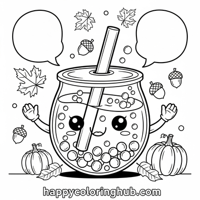 Bubble tea autumn coloring page for kids