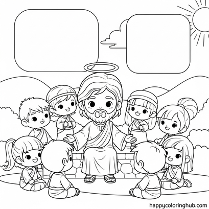 Bring the heartwarming story of Jesus and children to life with our free coloring pages! These printable sheets offer a delightful way for kids to connect with this beloved biblical scene. Coloring encourages creativity, improves fine motor skills, and provides a relaxing activity. Download your Jesus and children coloring pages today and let the little ones explore faith through art. Perfect for Sunday school, home activities, or quiet time. Unleash their imagination and share the love of Jesus!