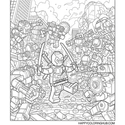 Unleash your inner superhero with Lego Deadpool coloring pages! Dive into a world where bricks meet the Merc with a Mouth. These printable pages offer hours of creative fun for kids and adults. Coloring Lego Deadpool characters helps improve focus, fine motor skills, and stimulates imagination. Perfect for fans of Lego, Deadpool, and stress-relieving activities, these coloring pages are easy to download and print. Get your crayons ready and bring Lego Deadpool to life with vibrant colors! Explore a variety of poses and scenes, from action-packed battles to quirky moments. Start your coloring adventure today!