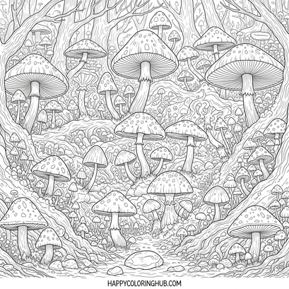 Dive into the enchanting world of Complex Dark Fantasy Fungi coloring pages! Unleash your creativity and explore intricate designs featuring otherworldly mushrooms and fantastical flora. Perfect for fantasy lovers and coloring enthusiasts, these detailed illustrations offer a relaxing escape and a chance to reduce stress. Coloring intricate patterns can improve focus and stimulate imagination. Download and print these unique fungal landscapes today, and let your inner artist flourish! Discover the therapeutic benefits of coloring while bringing these dark fantasy worlds to life.