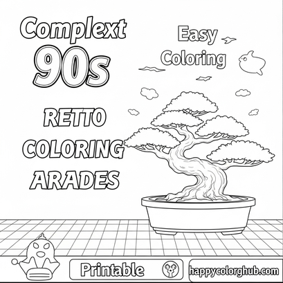 Unleash your inner artist with our Complex Retro 90s Bonsai Coloring Page! This intricate design blends the serene beauty of bonsai with vibrant 90s nostalgia. Perfect for mindful relaxation and creative expression. Download and print instantly for hours of calming fun. Great for adults and teens seeking a unique coloring challenge. #coloringpage #bonsai #90s #retro #adultcoloring #printable #arttherapy