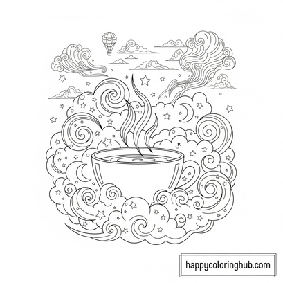 Unwind with our Cozy Evening Tea Simple Coloring Page! This delightful illustration invites you to relax and embrace tranquility. Perfect for all ages, this easy-to-color design features a comforting tea setting.