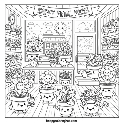 Unwind with our Cozy Flower Shop Coloring Page! Immerse yourself in a world of floral beauty and calming creativity. Perfect for all ages, this charming illustration of a flower shop offers a delightful escape. Coloring is proven to reduce stress and improve focus, making it a wonderful activity for relaxation. Download our free printable and bring these beautiful blooms to life with your favorite colors! Unleash your inner artist and experience the therapeutic benefits of coloring today. #coloringpage #flowershop #coloring #freecoloringpage #relaxation #stressrelief #arttherapy #cozy