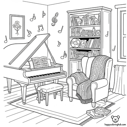 Unwind and let your creativity flow with our Cozy Music Room Coloring Page! Escape into a world of melodies and instruments as you bring this inviting scene to life. Coloring is a fantastic way to relax, reduce stress, and boost mindfulness. Perfect for music lovers of all ages, this page offers a soothing and engaging activity. Download and print your free cozy music room coloring page today! Discover the joy of coloring and create your own masterpiece. #coloringpage #musicroom #cozy #relaxing #mindfulness #freecoloring #musiclovers