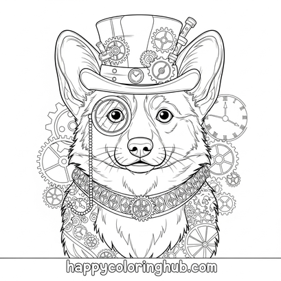 Unleash your inner artist with our adorable Cute Steampunk Corgis Coloring Page! These charming pups are decked out in gears, goggles, and Victorian flair, ready for a splash of color. Perfect for both kids and adults, this coloring page provides a fun and relaxing activity. Coloring reduces stress, improves focus, and boosts creativity. Download our Steampunk Corgis coloring page today and bring these whimsical mechanical canines to life with your favorite shades! Get ready for a paws-itively amazing coloring experience!