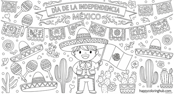 Celebrate Mexican Independence Day with vibrant “16 de Septiembre Mexico Coloring Pages”! Discover a collection of free, printable coloring sheets featuring iconic symbols like the Mexican flag, mariachi bands, and traditional outfits. Perfect for kids and adults, these coloring pages offer a fun and educational way to learn about Mexican culture and history. Download your favorites and get creative this September 16th! #16deSeptiembre #Mexico #ColoringPages #MexicanIndependenceDay #FreePrintables