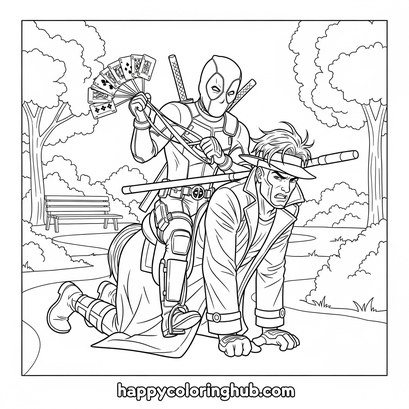 Unleash your inner artist with Deadpool vs. Gambit coloring pages! Kids (and adults!) will love bringing these iconic Marvel characters to life with vibrant colors. Download free, printable Deadpool and Gambit coloring sheets for hours of superhero fun. Perfect for rainy days or creative playdates. Explore action-packed poses and let your imagination run wild! Grab your crayons and start coloring! #Deadpool #Gambit #ColoringPages #Marvel #KidsActivities #FreePrintables #SuperheroColoring