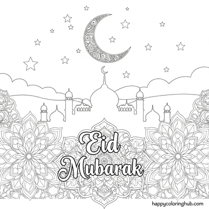 Celebrate Eid with creativity! Download free, printable Eid coloring pages for kids and adults. These beautiful designs feature mosques, crescents, stars, and festive patterns, perfect for expressing the joy of Eid al-Fitr and Eid al-Adha. Coloring is a fantastic way to relax, relieve stress, and improve focus. It also boosts creativity and fine motor skills in children. Make this Eid extra special by printing out these coloring pages and creating personalized Eid decorations or gifts. Discover the fun and therapeutic benefits of coloring while celebrating this joyous occasion! Happy Eid coloring!