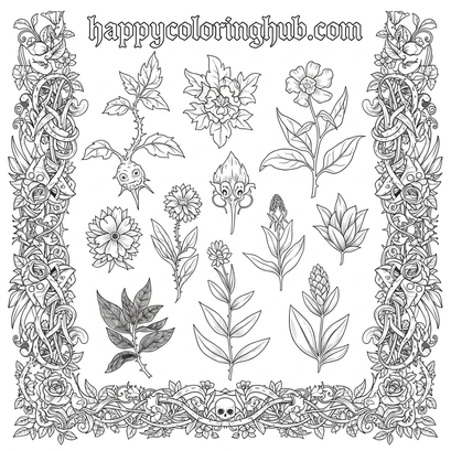 Unleash your inner artist with our Gothic Herbs Coloring Page, perfect for seniors seeking a relaxing and creative outlet. Immerse yourself in intricate designs featuring botanicals with a dark, mysterious twist. Coloring isn’t just fun; it’s proven to reduce stress, improve focus, and stimulate cognitive function. This Gothic Herbs page offers a unique and engaging way to unwind, promoting mindfulness and artistic expression. Download yours today and experience the therapeutic benefits of coloring while adding a touch of gothic charm to your artwork. Happy coloring!