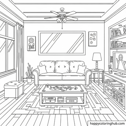 Unwind and unleash your inner artist with our collection of interior room adult coloring pages! Escape the everyday stress and find tranquility as you bring beautifully detailed rooms to life with your unique color palette.