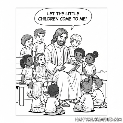 Jesus loved and blessed children, teaching us the importance of innocence and faith. Share this message with your kids through our free “Jesus Blesses the Children” coloring page! Download, print, and color this beautiful scene depicting Jesus surrounded by happy children. A perfect Sunday school activity or a fun way to teach little ones about Jesus’s love. #JesusLovesChildren #ColoringPage #SundaySchool #BibleStory #KidsActivities #FreePrintable #JesusAndChildren