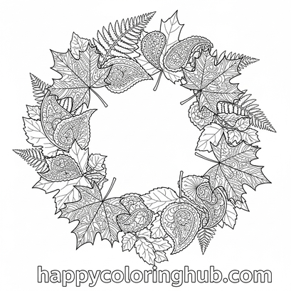 Leaf wreath coloring page