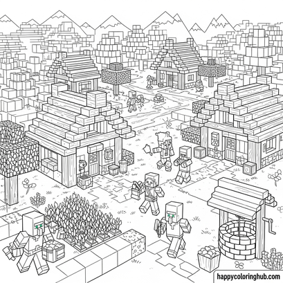 Unleash your creativity with Minecraft Village Coloring Pages! Dive into the blocky world and bring your favorite villagers, houses, and landscapes to life with vibrant colors. Perfect for Minecraft fans of all ages, these coloring pages offer a fun and relaxing activity that improves focus, stimulates imagination, and reduces stress. Download and print your free Minecraft Village coloring pages today! Explore different color palettes and create your unique Minecraft masterpiece. A fantastic way to engage kids creatively and a calming pastime for adults. Start coloring your Minecraft Village adventure now!