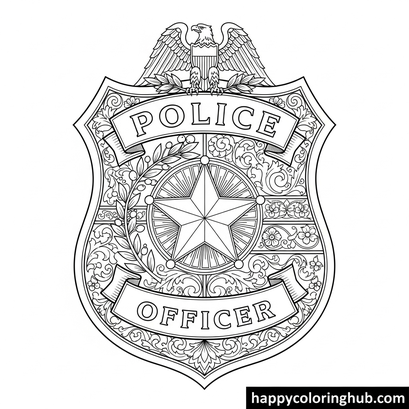 Unleash your inner artist with our Police Badge Coloring Page! Perfect for kids and adults, this free printable activity provides hours of creative fun. Coloring intricate details boosts focus, reduces stress, and encourages fine motor skill development. Download now and bring this symbol of law and order to life with your own unique color palette. Explore different shades of blue, silver, and gold to personalize your badge. A fantastic, educational, and engaging way to spark creativity while learning about community helpers. Download your Police Badge Coloring Page today!