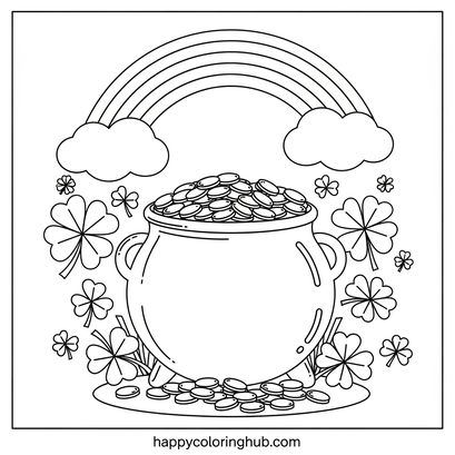 Looking for a “pot of gold coloring page png”? Download free, printable pot of gold coloring pages for St. Patrick’s Day fun! These PNG images are perfect for kids and adults. Unleash your creativity with rainbows, leprechauns, and gold coins. Get your lucky charm coloring pages now! Easy to download and print, these adorable designs are a fun, free activity for the holiday. #potofgold #coloringpage #png #stpatricksday #free #printable