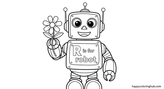 R is for Robot! Spark creativity with our free “R is for Robot” coloring page. Perfect for preschoolers and young children, this fun activity combines letter recognition with imaginative play. Coloring helps develop fine motor skills, hand-eye coordination, and concentration. Download and print our robot coloring sheet today for an engaging and educational activity. Unleash your child’s inner artist as they bring their own unique robot to life with color! A great way to learn the alphabet and have fun too. Download now and start coloring!