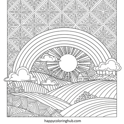 Unleash your creativity with our vibrant rainbow landscape coloring pages! Dive into a world of colorful mountains, cheerful suns, and whimsical rainbows. Perfect for kids and adults, these pages offer a relaxing and engaging activity. Coloring reduces stress, improves focus, and sparks imagination. Download your free rainbow landscape coloring page today and bring a burst of color to your world! Keywords: rainbow, landscape, coloring page, free, printable, kids, adults, activity, coloring, stress relief, creativity.