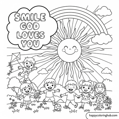 Unleash joy with our “Smile, God Loves You” coloring page! Download this free printable and brighten your day while expressing your faith. Coloring isn’t just fun; it’s a relaxing activity that reduces stress and sparks creativity. Perfect for kids and adults, this uplifting coloring page reminds you of God’s unconditional love. Engage in mindful coloring, improve focus, and create a beautiful piece of art. Get your free “Smile, God Loves You” coloring page now and spread positivity, one colorful stroke at a time!