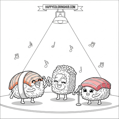 Unleash your creativity with Sushi Singing Coloring Pages! Dive into a world where adorable sushi characters belt out catchy tunes, all waiting for your artistic touch. These printable coloring pages provide hours of entertainment and offer fantastic developmental benefits. Coloring enhances fine motor skills, boosts concentration, and fosters self-expression in children and adults alike. So grab your crayons, markers, or colored pencils, and bring these musical sushi sensations to life. Download your Sushi Singing Coloring Pages today for a fun, relaxing, and educational activity that’s sure to strike a chord!
