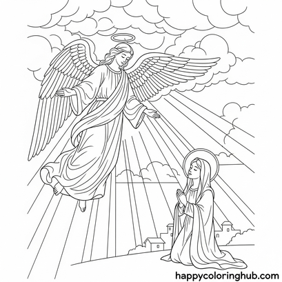 Unleash creativity and explore the biblical story of the Annunciation with our captivating “Angel Appears to Mary” coloring pages. These printable sheets offer a delightful way for children and adults to engage with this pivotal moment in Christian history. Coloring provides a relaxing and mindful activity, fostering focus and improving fine motor skills. Download your free angel and Mary coloring pages today and embark on an artistic journey that brings this inspiring narrative to life. Share the joy and benefits of coloring with loved ones!