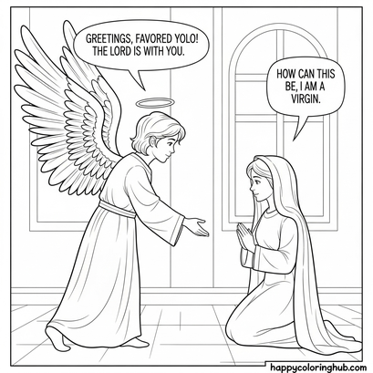 Bring the biblical story to life with our Angel Visits Mary Coloring Page! Spark creativity and learn about the Annunciation through art. This free printable coloring page is perfect for kids and adults alike. Coloring offers numerous benefits, promoting relaxation, focus, and fine motor skills development. Download, print, and enjoy hours of meditative coloring fun while reflecting on this significant religious event. Perfect for Sunday school, homeschooling, or a quiet afternoon of artistic expression. Explore your faith and creativity with our Angel Visits Mary coloring page today!