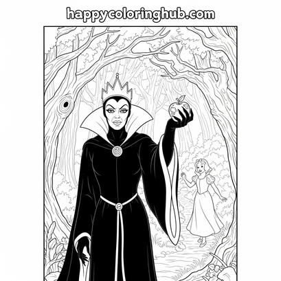 Unleash your creativity with our Evil Queen Snow White coloring page! Embrace the darkly glamorous side of this iconic fairy tale villain. Perfect for fans of Snow White and anyone who loves a touch of wicked fun. Coloring isn’t just entertaining; it’s a fantastic stress reliever, promoting mindfulness and focus. Download our free Evil Queen coloring page and let your imagination run wild as you choose your perfect color palette to bring her to life. A great activity for kids and adults alike, spark your artistic side today!
